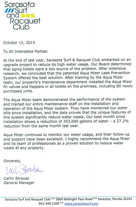 Testimonial Letter - Sarasota Surf and Racquet Club
