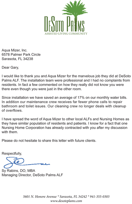 Testimonial Letter - Desoto Palms